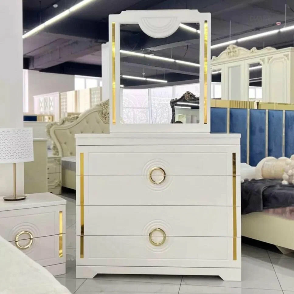 | Описание: | Шкаф: В2185 х Ш1876 х Г585 Кровать: В1330 х Ш1912 х Г2090 Спальное место: 1800 х 2000 Зеркало навесное: В900 х Ш750 х Г24 Тумба прикроватная: В485 х Ш550 х Г395 Комод: В925 х Ш1058 х Г450 Цвет: Белый/Золото С основанием, без матраца. |