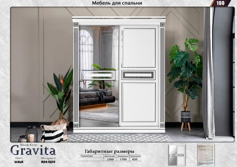 Шкаф-купе "Гравита" 2,46 м Белый, Elegant |