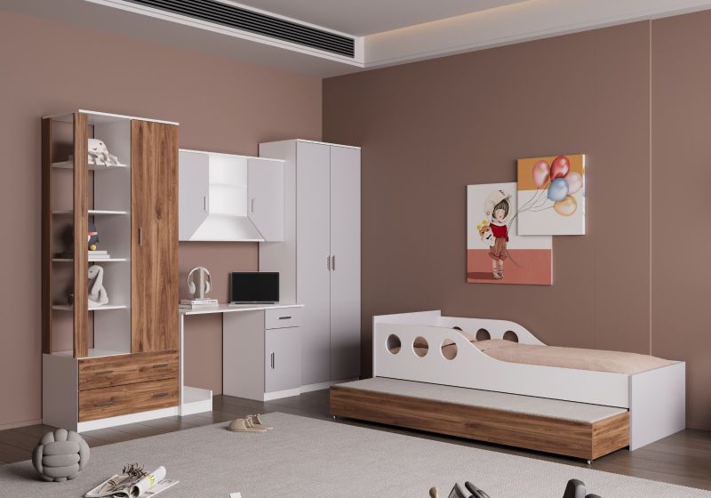 | Описание: | Кровать: 700*2000*850 (Матрац 80*180) Стенка: 2120*2800*580 С поролоновыми матрацами |