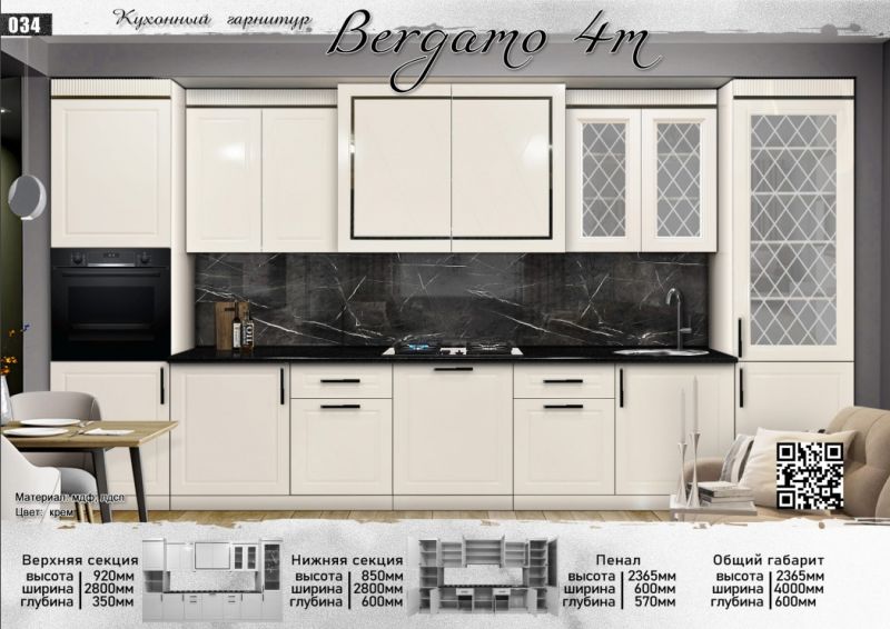 Кухонный гарнитур "Бергамо" (Bergamo) 3,4 м, Крем Elegant |