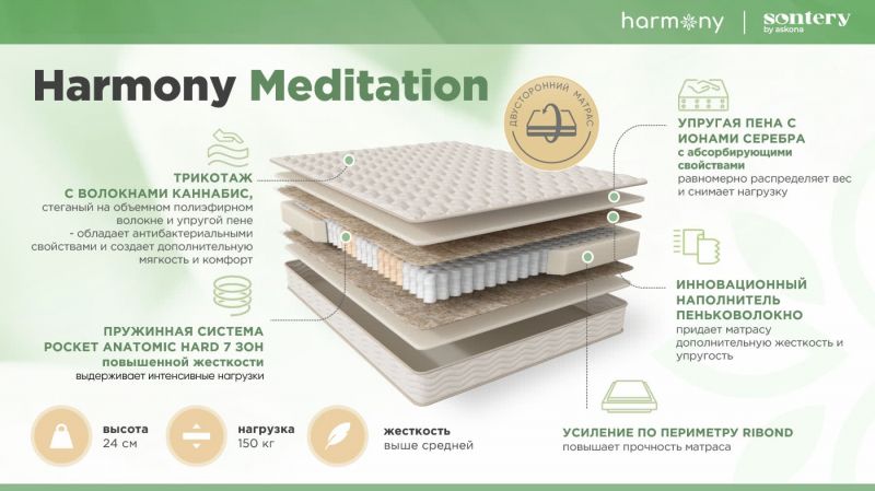 | Описание: | Ортопедический: Да Вес на место, max.: 150.0 кг Ширина, см: 160 Длина, см: 200 Высота, см: 24.0 см Основные характеристики Тип: матрас Жесткость стороны 1: выше средней Пружинный блок: с независимыми пружинами Наполнитель: ортопедическая пена, конопляное волокно Материал чехла: трикотаж Цвет: белый Страна: Россия |