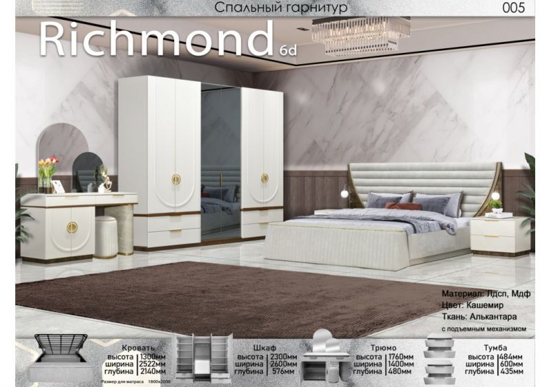 | Описание: | Материал: МДФ/ЛДСП Цвет: Кашемир Ткань: Алькантара. С подъемным механизмом 1.Кровать Высота:1300 Ширина:2522 Глубина:2140 2.Шкаф Высота:2300 Ширина:2600 Глубина:576 3.Трюмо Высота:1760 Ширина:1400 Глубина:480 4.Тумба Высота:484 Ширина:600 Глубина:435 Размер спального места: 1800×2000. |