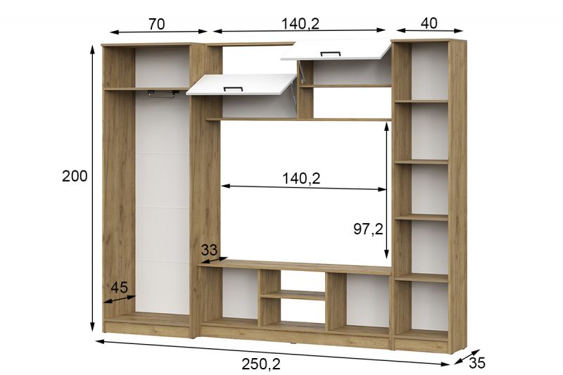 | Описание: | Вес: 129.02 кг Глубина: 350 мм Высота: 2000 мм Ширина: 2502 мм Материал: ЛДСП Цвет: Дуб Золотой/Белый Шагрень |
