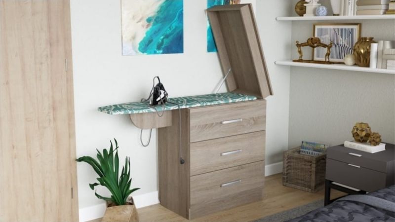Комод К-14 с гладильной доской Белый жемчуг/Дуб сонома, Росток |