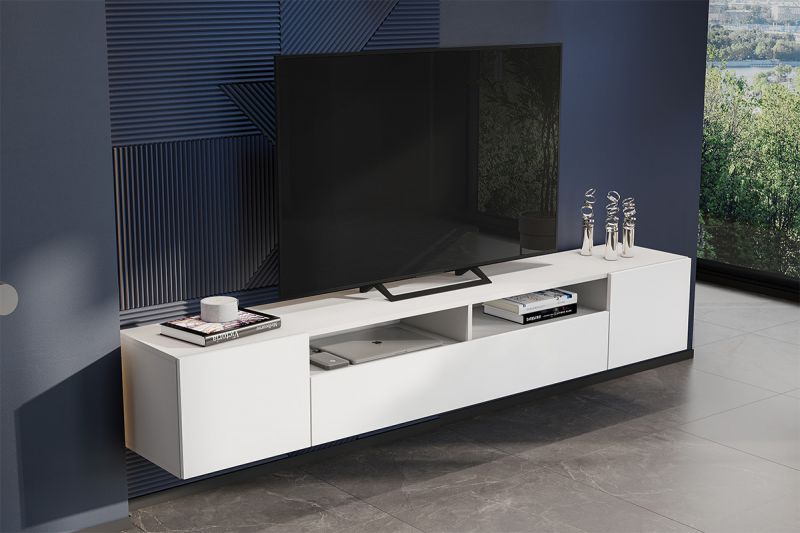 Денвер, Тумба RTV, Дуб Золотой/Белый шагрень, СВ Мебель |