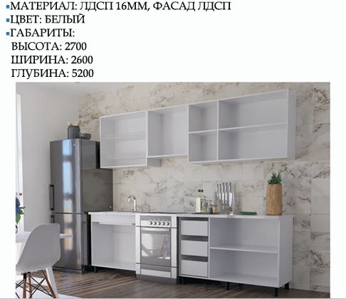 | Описание: | Тип: прямая Материал: ЛДСП Цвет: Белый/Серый Ширина гарнитура, см:260 Глубина гарнитура, см: 52 Высота гарнитура, см: 270 Страна: Казахстан С мойкой |