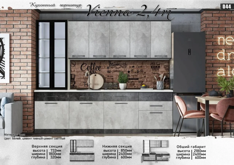 Кухонный гарнитур "Виенна" 2 м Белый/Серый, Elegant |