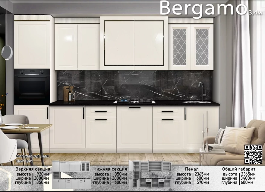 Кухонный гарнитур "Бергамо" (Bergamo) 4 м, Elegant |