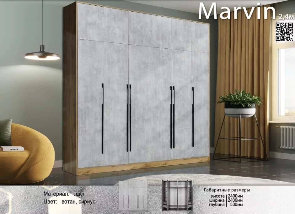 Шкаф "Марвин" (Marvin) 4Д Серый, Бетон - Пайн, Elegant |
