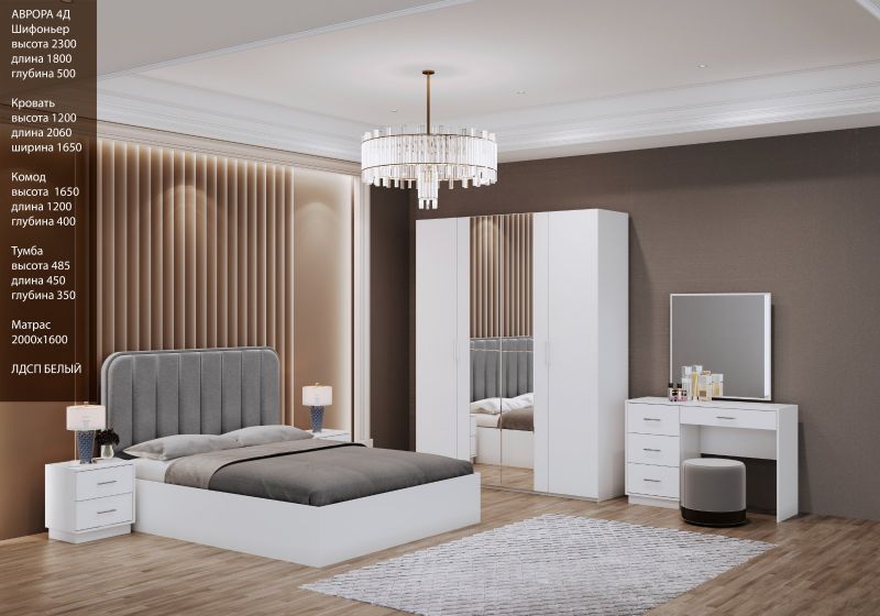 | Описание: | Кровать:1200*2060*1650 (Матрас 160*200) Шкаф: 1800 х 2300 х 500 мм Тумба:450*485*350 Комод:1200*1650*400 Основной материал: ЛДСП Комплектация: зеркало, комод, тумба прикроватная, шкаф, кровать Матрас в комплекте: нет Цвет: Белый Страна: Казахстан |